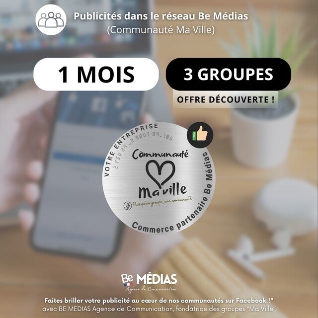 Publiez sur notre réseau Be Médias "Communauté Ma Ville" jusqu'à 6 posts/mois max (3 GROUPE MAX prédéfinis) pendant un mois